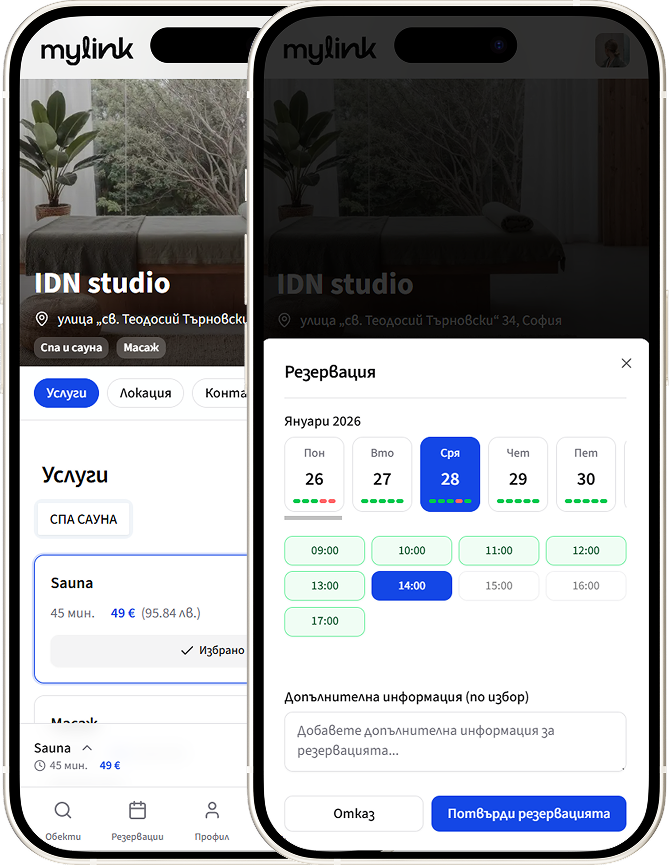 Научи как mylink.bg помага на бизнеси с услуги да приемат онлайн резервации, да управляват умен календар и да продават продукти на едно място.